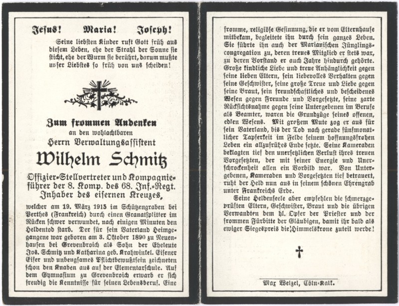 Verwaltungsassistent; Offizier-Stellvertreter und Kompagnieführer; auf dem Ehrenmal in Grevenbroich-Neuenhausen verzeichnet