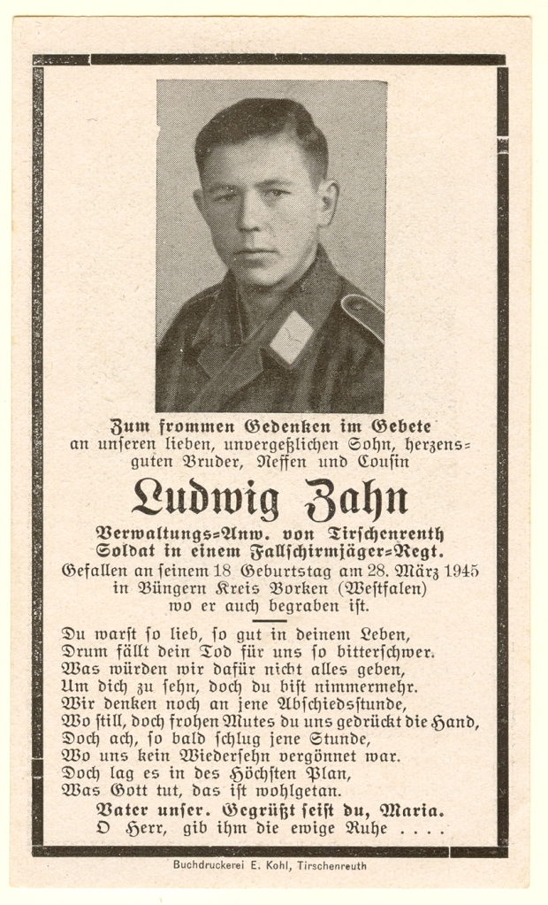 Zum frommen Gedenken im Gebete an unseren lieben, unvergesslichen Sohn herzensguten Bruder, Neffen und Cousin
