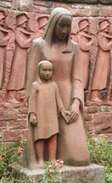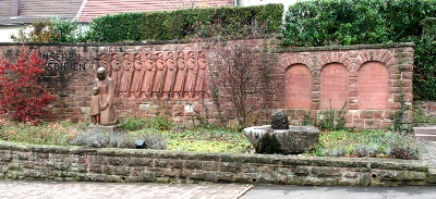 Kriegerdenkmalanlage in der Hauptstraße links unterhalb der Kirche zwischen Fußweg zur Kirche und Abzweigung der Ratsgasse, bestehend aus einer Sandsteinmauer mit dem Relief von zehn im Gleichschritt nach rechts marschierenden Soldaten, rechts von diesen in die Mauer eingelassen drei Sandsteintafeln mit den Namen der Opfer beider Weltkriege. Vor den Tafeln ein Brunnen aus grobem Stein, vor dem Relief die Sandsteinskulptur einer knienden Frau mit einem stehenden kleinen Mädchen (in der Liste der Kulturdenkmäler des Landkreises Südwestpfalz enthalten).