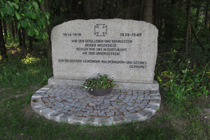 Walberngrün, Markt Grafengehaig, Landkreis Kulmbach, Oberfranken, BayernPLZ 95356 Steindenkmal 1914/18 + 1939/45 ohne Namen an der Landstraße zwischen den Orten Walberngrün und Gösmes