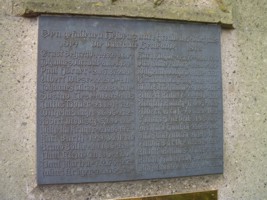 Namen und Daten und später angebrachter allgemeiner Gedenktafel für die Gefallenen des 2. Weltkriegs;