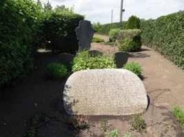 Kriegsgrab; Wilhelm Bramberg wurde am 29.04.1945 durch Bauchschuss verwundet, mangels erlaubter ärztlicher Hilfe und Pflege verstarb der Verwundete nach wenigen Tagen in einem Stall in Wegezin