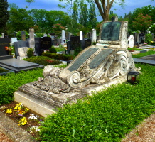Monument mit Metallnamenstafeln am Friedhof Wien-Mauer