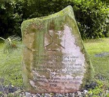 Gedenkstein: Wer in der Erinnerung seiner Kameraden lebt ist nicht tot. Tot ist nur wer vergessen wird. Wir gedenken unserer gefallenen Kameraden und aller Kriegstoten 1945. Reitweiner Sporn mit den Orten Podelzig, Wuhden und Klessin 1995