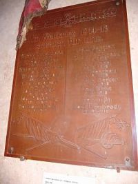 Gedenkstein 1813 über dem Kircheneingang; Gedenktafeln in der Kirche; Soldatengrab