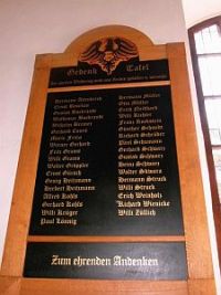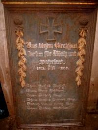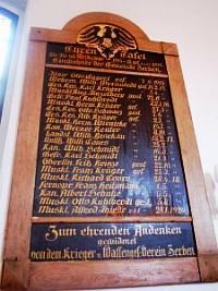 Gedenkstein 1. und 2. Weltkrieg; Gedenktafeln in der Kirche; Gedenken auf Familiengräbern