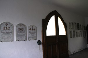Im Eingangsbereich der Kirche; Gedenktafeln an den Wänden