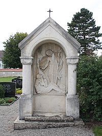 Altheim (Friedhof: Bildstock), Landkreis Biberach, Baden-WürttembergPLZ 88499 Im Friedhof; Bildstock, im Innern Bildrelief „Jesus segnet Sterbenden“, darunter Inschrift (ohne Namen)