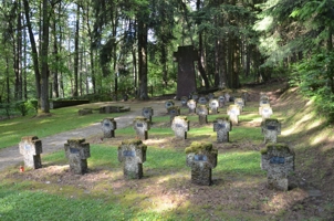 Im Wald auf dem ehemaligen Lagerfriedhof des heutigen Frankfurter Schullandheimes „Wegscheide“ befindet sich ein Ehrenfriedhof mit großem Steinkreuz und 32 Einzelgräbern. Jedes der Grabkreuze aus Tuffstein trägt eine Bronzetafel mit den Namen und Daten des Verstorbenen. In der Anlage wurden die nach dem 2. Weltkrieg aus ihrer Heimat in den deutschen Ostgebieten Vertriebenen bestattet, die im angrenzenden Lager verstorben waren. Am Mauer-Eingang des durch eine Hecke eingefassten Friedhofs informiert ein Bronzeschriftzug den Besucher über die 1966/67 neu gestaltete Anlage.