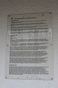 an der Friedhofskapelle Gedenktafel aus Glas (die Namen am Denkmal und der Gedenktafel sind identisch);