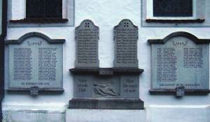 Drei Denkmale an der Nordseite der Kirchenaussenwand St. Peter und Paul