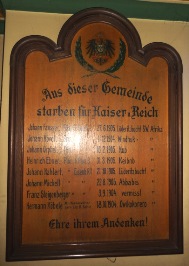 die ihr Leben im Ersten Weltkrieg verloren. Eine zweite Tafel erinnert an Tote der