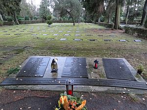 der 355 Opfernamen, die in Kriegsgräbern beigesetzt sind, ist eine Abschrift der Grabkissen. Häufig sind