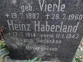 vermisst; privates Einzelgedenken; im Datenbestand des VDK ist ein Heinz Haberland, geboren am 13.07.1915 seit dem 01.01.1942 vermisst