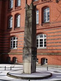 Die Denkmalstele befindet sich an der Wilhelmstraße 26-30, zwischen Kasernenzaun und Gebäudekomplex. auf dem Areal der unter Denkmalschutz stehenden Kaserne des ehemaligen Brandenburgischen Train Bataillon Nr.3 (später: Britische Smuts-Barracks).