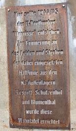Das Mahnmal besteht aus zwei Tafen und ist an der Wand der Stirnseite des Bunkers montiert.