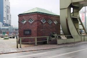 Mahntafel am Maschinenhaus der Klappbrücke zwischen Altem und Neuen Hafen