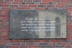 Im Alten und Neuen Hafen lag im Jahre 1933 das „Gespensterschiff". Auf diesem Schiff wurden