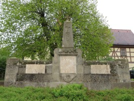und ein Schwert mit Eichenlaub zu sehen, auf der Rückseite sind die Namen der Kriegsteilnehmer eingemeißelt