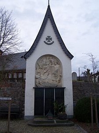 Kapellenfront mit einem Relief des auferstandenen Christus und einem Soldaten zu seinen Füßen