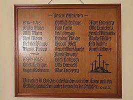 In der ev. Kirche; Gedenktafel an der Wand