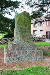 Monolith mit Inschrift vor der Kirche ohne Namen.