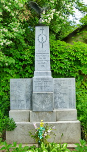 Errichtet zum Andenken an die im Weltkrieg 1914 – 1918 gefallenen Krieger aus Dörfel 1919. Zum Andenken an die im 2. Weltkrieg 1939 – 1945 gefallenen Krieger.