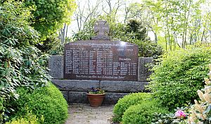 Anlage eine Mauer aus großen Steinblöcken, dazwischen eine rote Marmorplatte mit den Namen der