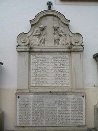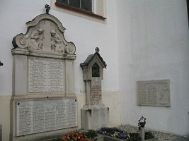 Gedenktafeln an der Südseite der Pfarrkirche St. Peter und Paul gewidmet den gefallenen, vermißten und