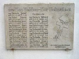 Kleine Gedenktafel rechts davon ist gewidmet für die gefallenen und vermißten Soldaten des 2. Weltkriegs der