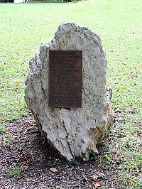 In der Wolfert-Anlage eine quadratische sich verjüngende Säule, oben mit Adler, an allen Seiten Gedenktafeln; am Weg ein Naturstein mit Hinweistafel
