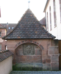 Feucht (Herz Jesu Kirche: 1. Weltkrieg), Landkreis Nürnberger Land, Mittelfranken, BayernPLZ 90537 In einer Mauernische vor dem Eingang der kath. Herz-Jesu Kirche sind Namen und Daten der Gefallenen der Gemeinde verzeichnet. Leider ist die Schrift auf dem Sandstein teilweise verwittert.