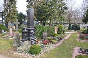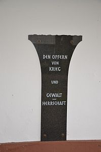 Mahnmal für die Opfer der Kriege und Gewaltherrschaft. Auf privaten Grabsteinen befinden sich noch Inschriften zum