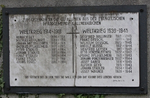 Zum Gedenken an die Gefallenen aus der evangelischen Pfarrgemeinde Gallneukirchen (Namen) Sei getreu bis in den Tod, so will ich dir die Krone des Lebens geben. (Offb.Joh. 2.10)