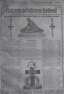 Im Genthiner Wochenblatt ist zwischen der Namensliste ein Gedicht von Margarete Bruch von 1915 abgedruckt, mit