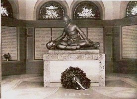 eines sterbenden und eines trauenden Soldaten, die Namen der Gefallenen an die Innenwände gemalt,