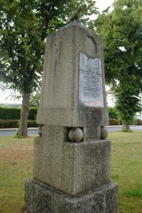 Denkmal für Kriegsopfer, Stele auf dem Dorfplatz; Gedenken auf Familiengrab