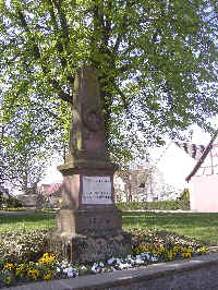 Bei der Kirche eine stufig gegliederte Stele von 1896 mit Text auf einer Marmortafel, gestaltet vom Bildhauer H. Fürst aus Staufen. Die Säule ist verziert mit einem Eisernen Kreuz in einem Lorbeerkranz.