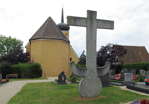 Sechseckige Steinstele mit krönender Soldatenstatue an der Durchgangsstraße im Ort. Die Statue hält eine Tafel mit den Namen der Opfer des ersten Weltkriegs. An der Stele sind drei gravierte Steintafeln mit den Namen der Opfer des zweiten Weltkriegs angebracht. Auf dem Ortsfriedhof hinter der Filialkirche St. Johannes der Täufer steht ein steinernes Hochkreuz mit verschiedenen Skulpturen auf der Vorder- und Rückseite. Auf der Rückseite befindet sich eine Europakarte mit 42 Totenkreuzen, die die Länder markieren in denen die Soldaten beider Weltkriege gefallen sind.