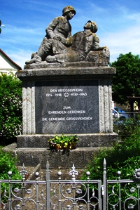 Großvichtach, Markt Marktrodach, Landkreis Kronach, Oberfranken, BayernPLZ 96364 Rechteckiger Steinsockel mit gravierter polierter Inschriftenplatte, auf dem Sockel eine monumentale Skulptur mit einem sterbenden und einem ihn betreuenden Soldaten. Das Denkmal steht an einer Straßengabelung im Ortskern.