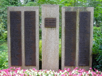 Zwei Steinplatten mit Namen und eine Steinplatte mit Inschrift 2. Weltkrieg