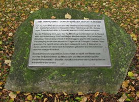 Vor dem Bahnhof in Herzberg, in einer kleinen Grünanlage, befindet sich eine Metallplatte auf einem Naturstein, die an die Opfer der Deportationen erinnert.