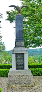 Stele gekrönt mit Adler neben der Kirche.