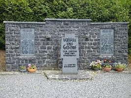 Das Kriegerdenkmal befindet sich in der Nähe der Kirche. Eine hohe Steinwand in die zwei Namenstafeln aus Stein