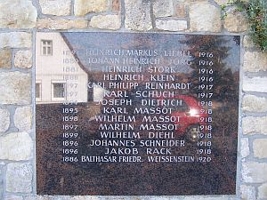 Zwei Marmorplatten vor dem Haupteingang der ev. St. Michaelis Kirche in Klein-Karben