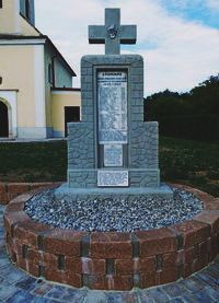Freistehendes Denkmal auf runden Sockel gekrönt mit Kreuz vor