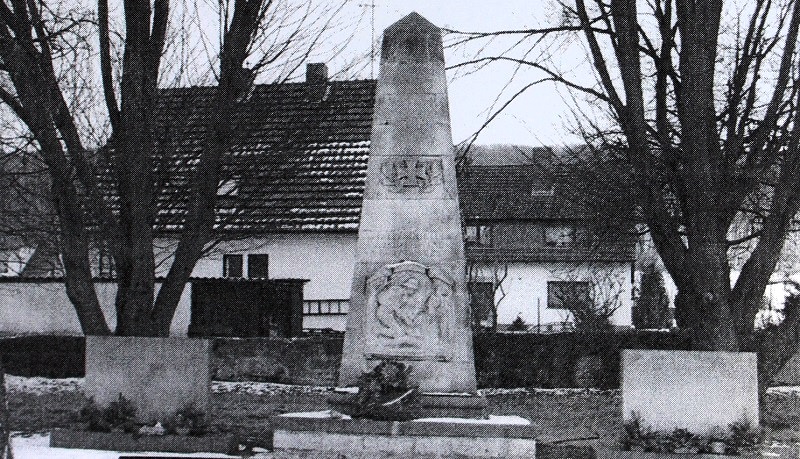 Rechter Gedenkstein: Den Opfern des Krieges 19391945 Sie blieben vermißt, ihr Schicksal ist ungewiss. Den Toten und Vermißten zum Gedenken; den Lebenden zur Mahnung. (Namen)