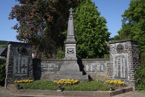 Angebrachte Tafeln weisen die Namen der Weltkriegsopfer und die