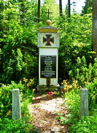 'Soldatendenkmal', das an 21 Gefallene erinnert, die aus Feld- und Waldgräbern 1947 hier zusammengebettet