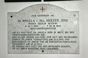 Am 8.5.1933 trat Sr. Angela hier in Mötz bei den Trinitarierschwestern ein. Ihre klare innere Haltung zur Zeit des NS-Regimes führte zu ihrer Verhaftung am 12.8.1940 und schliesslich zu ihrem Tod im Konzentrationslager Auschwitz am 23.12.1944. Sr. Angela hat Gott und den Menschen gedient, sie ist ihrer Berufung treu geblieben.